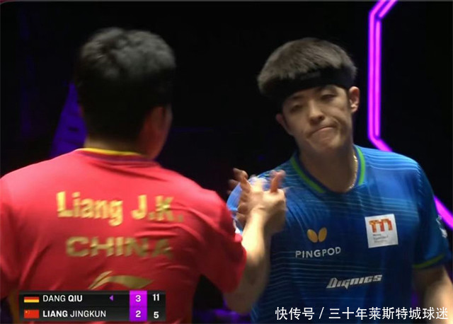 悲怆的是,刚夸完林诗栋,以为国乒男队没问题了,梁靖崑却又掉了链子!另外一场1/4决赛,梁靖崑在先胜两局的情况下被敌手翻盘,他以2-3(11-2、11-8、10-12、5-11、5-11)不敌德国的邱党无缘四强。