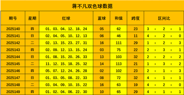 双色球上期数据分析:红球开出01,02,04,06,22,30,蓝球开出10。和值65,跨度29,区间比4:1:1。
